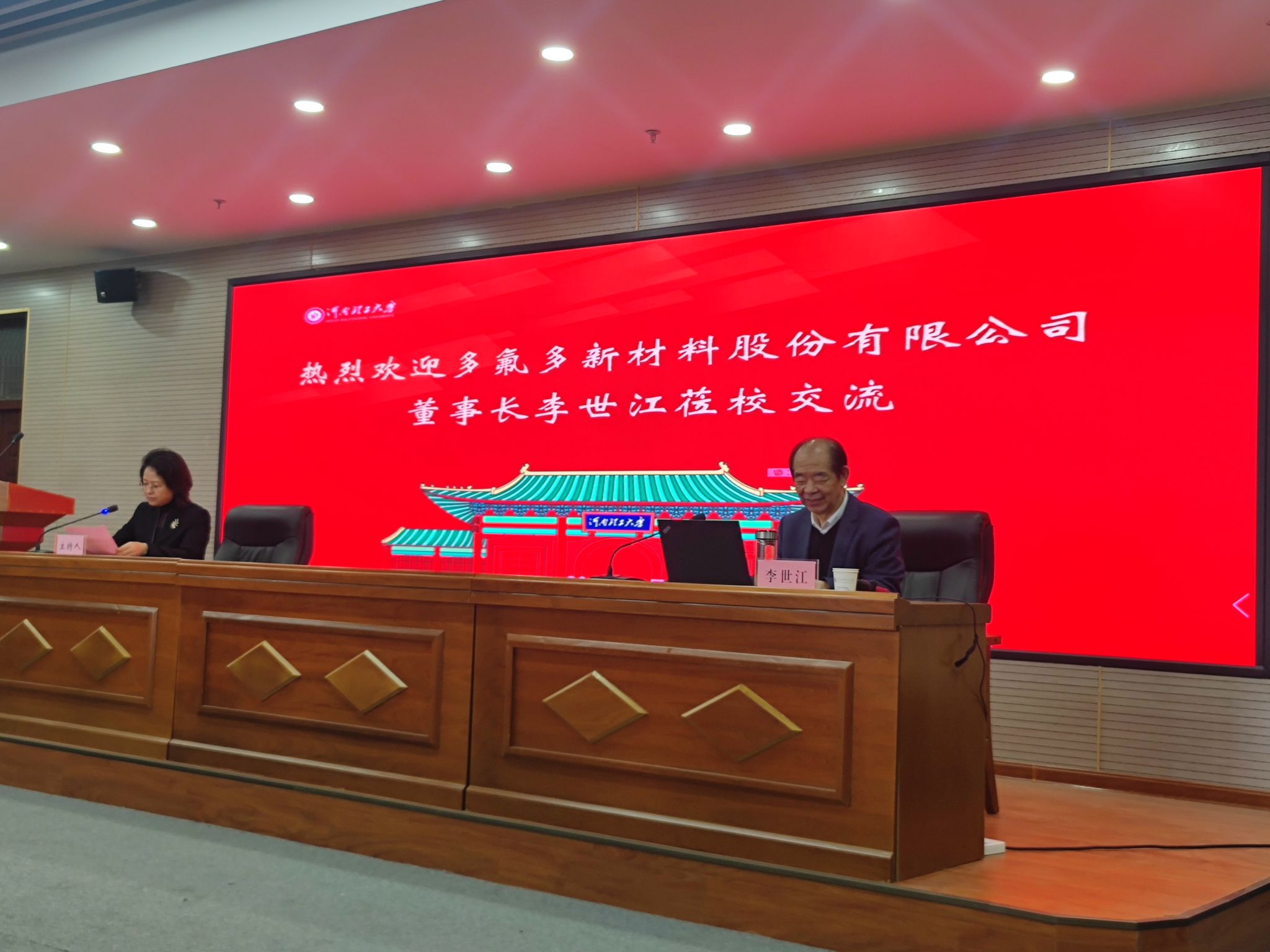 2025年10月18日上午,多氟多新材料股份有限公司董事长李世江在国家重点实验室大楼345会议室作题为《新材料支撑新能源,新能源牵引新材料》的专题讲座,我们2025级MBA参加讲座。