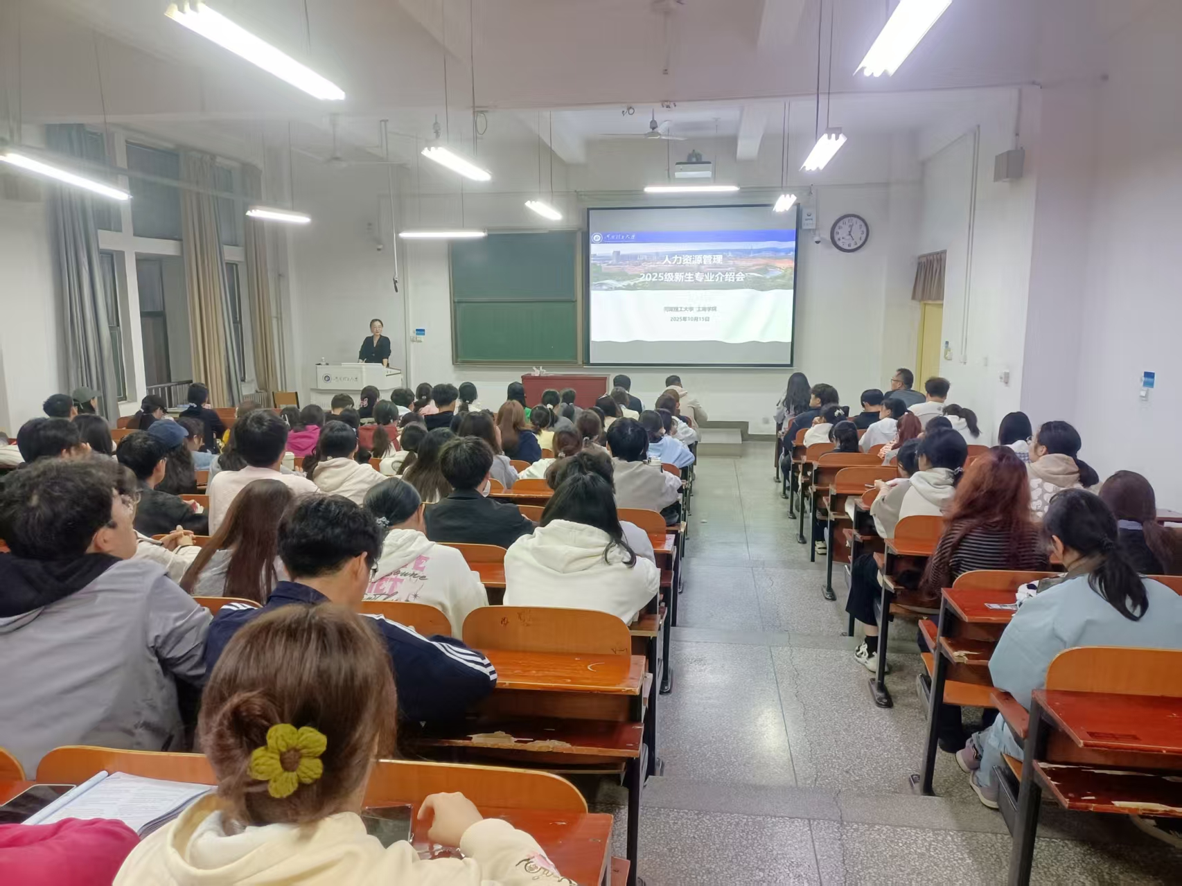 王迪从专业特色、课程设置、师资力量及就业成果四个维度,为新生勾勒出清晰而充满机遇的成长蓝图。她指出,人力资源管理专业致力于培养高素质复合型创新人才,课程体系注重理论与实践融合,通过丰富的业界讲座、实习指导及企业高管的客座授课,构建多元化教学形式,帮助学生夯实专业基础、提升综合能力。